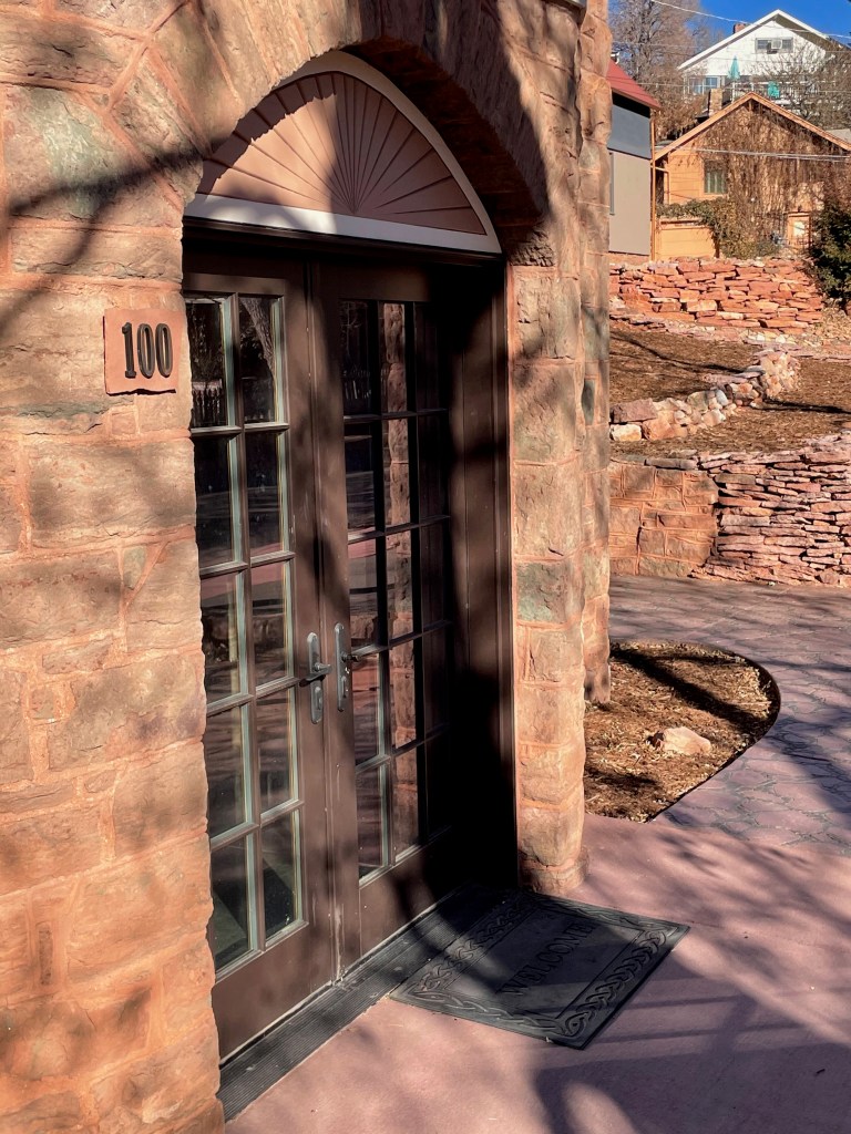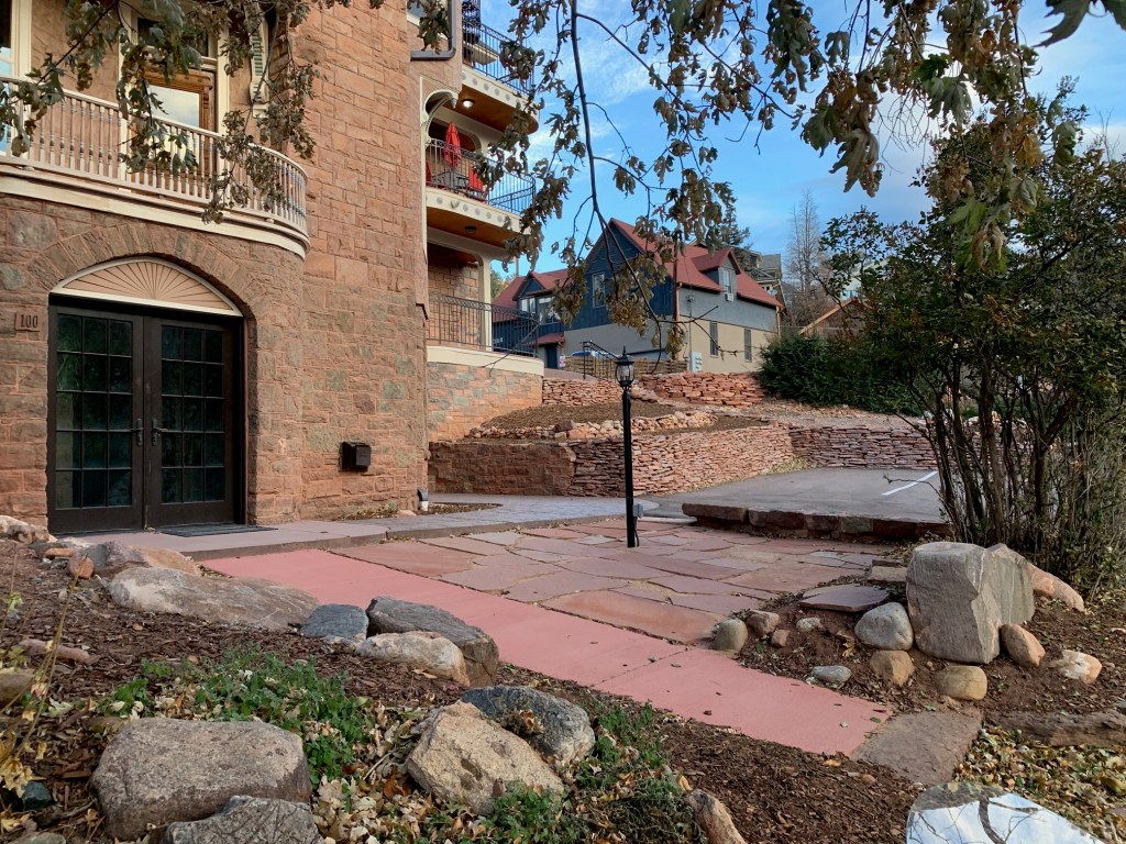 Lovely French Door entrance to the Garden Level Unit. The HOA makes for a maintenance free exterior. A private 12×12 flagstone patio offers fresco dining. A second entrance patio is also connected to the front patio and parking area.