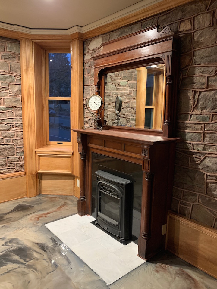 Artfully crafted tuck pointing throughout the Unit 100 walls, 20″ thick original Manitou Greenstone construction.