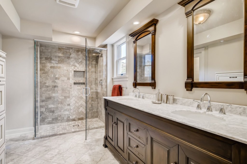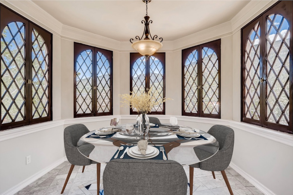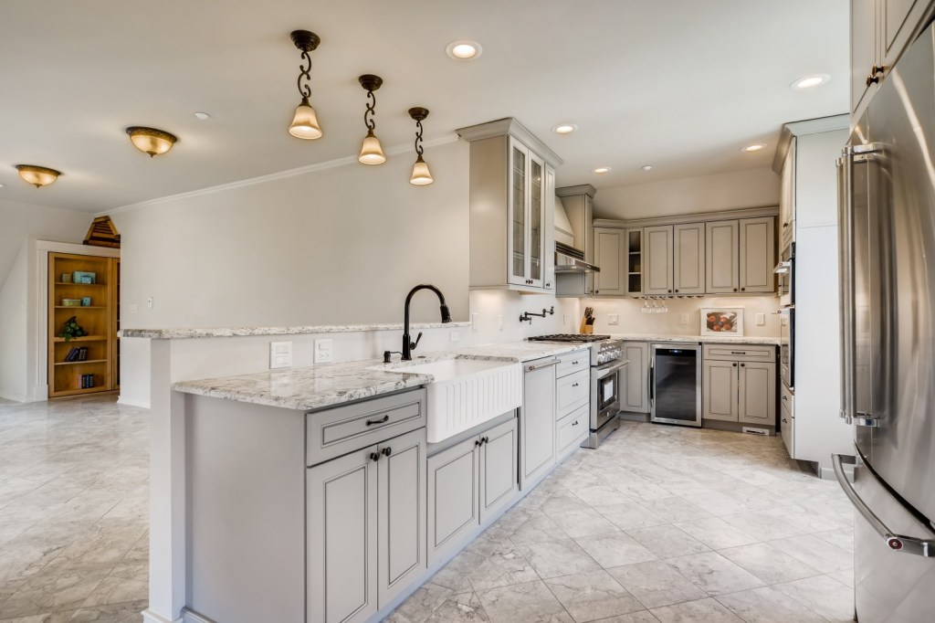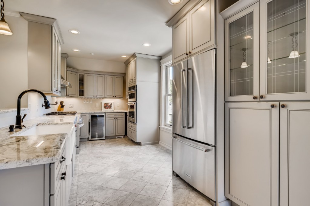 Inclusive in this incredible property is a gourmet kitchen with breakfast bar, Kitchen Aid Proline SS appliances, 36″ farm sink, pot filler, instant hot water, solid wood cabinets (glass doors) w slow close, built-in pull-outs, granite counters, a pantry area, and a beverage cooler and wine storage.