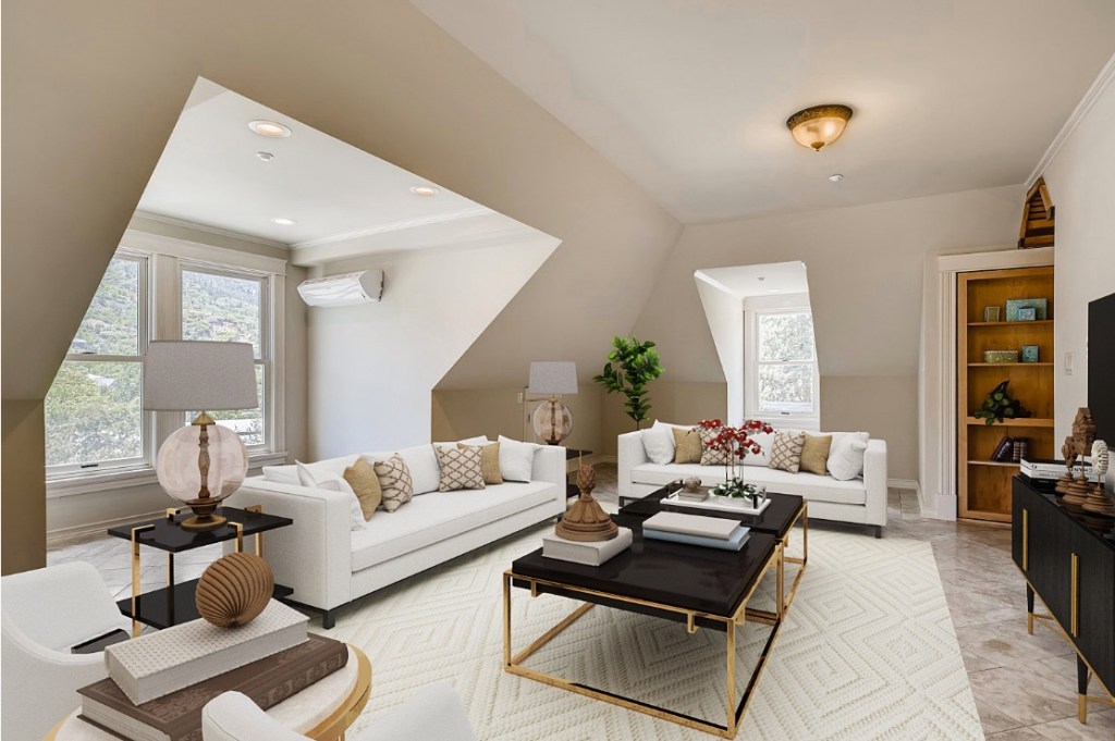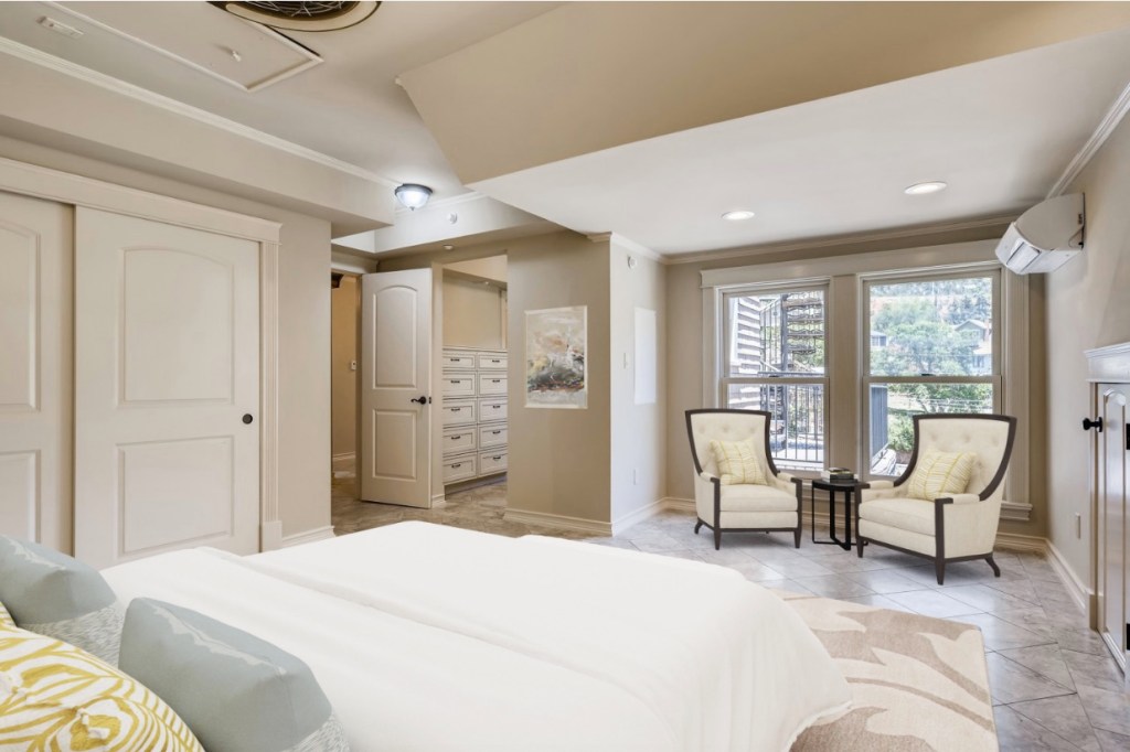 The top unit in the Grand Avenue Condominiums enjoys spectacular unencumbered views from every room and alcove. The new owners have unlimited options for laying out the living spaces and taking advantage of unique spaces throughout the condo.